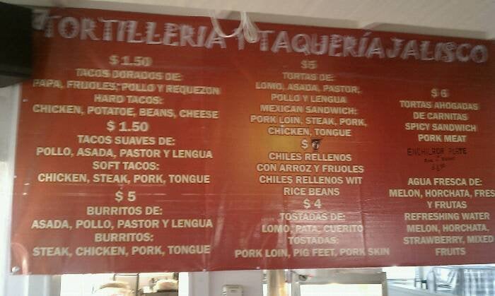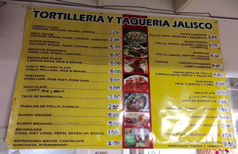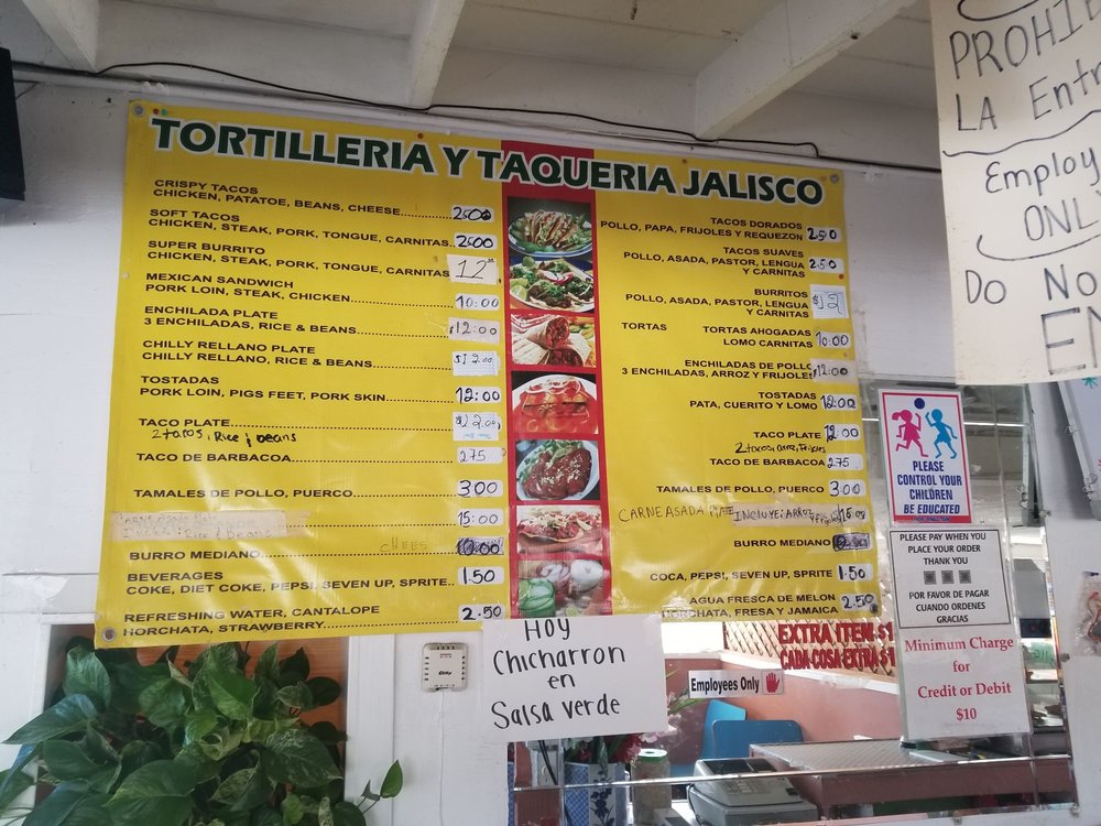 Introducing the Menu at Tortilleria Jalisco